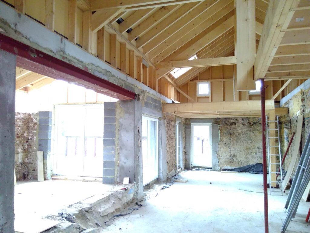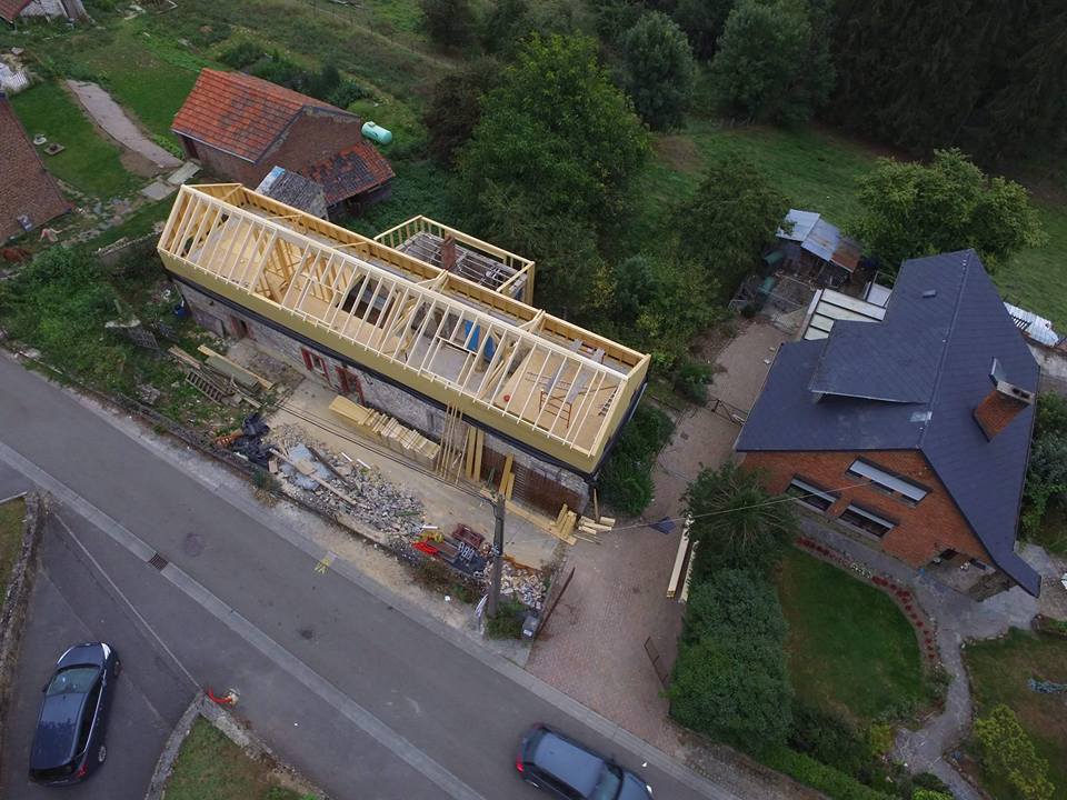 - Rehausse d’un étage complet en bois sur anciens murs en pierre